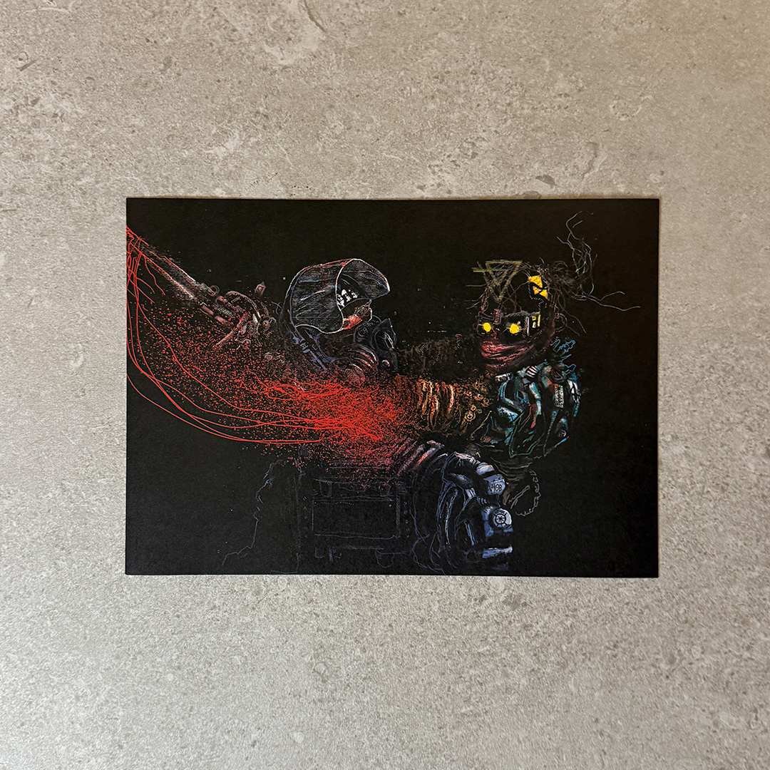 A5 (210×148mm) print with art from the CY_BORG core book of a respectful exchange of opinions.