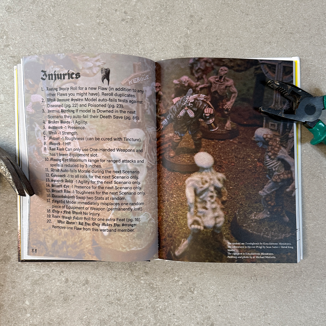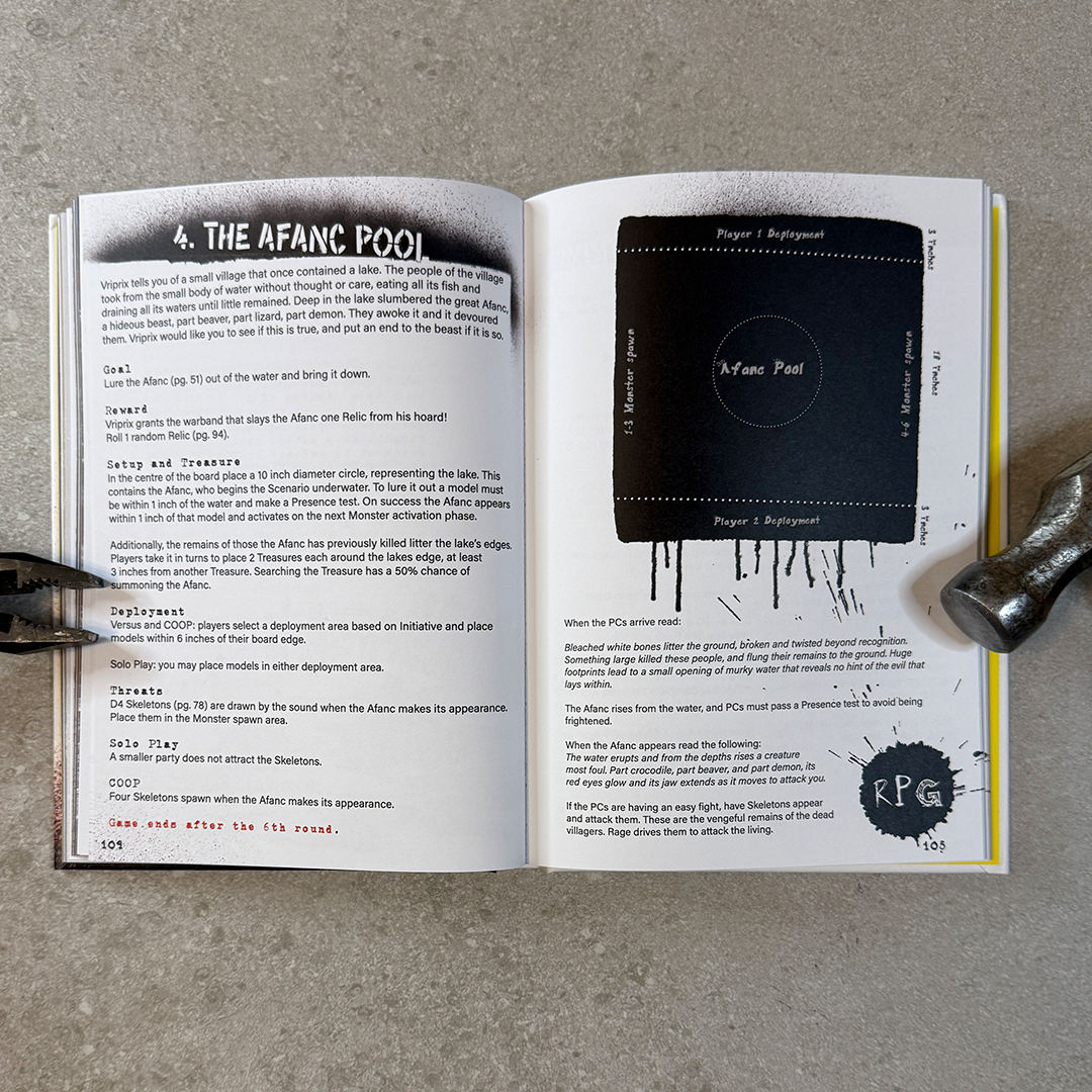 In Forbidden Psalm, you will recruit a warband of 5 greedy souls to undertake Vriprix the Mad Wizards’ bidding. But the Mad Wizard hasn’t just bet on you. You will face rivals before you will seen any of his coin. Hunt ravenous monsters and unearth dangerous relics as you search for the Psalm itself....maybe even help the Mad Wizard locate his misplaced socks.
