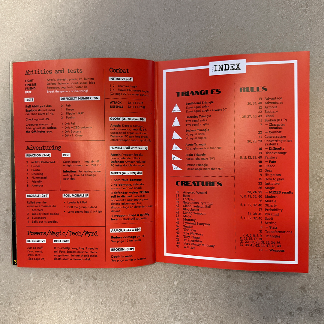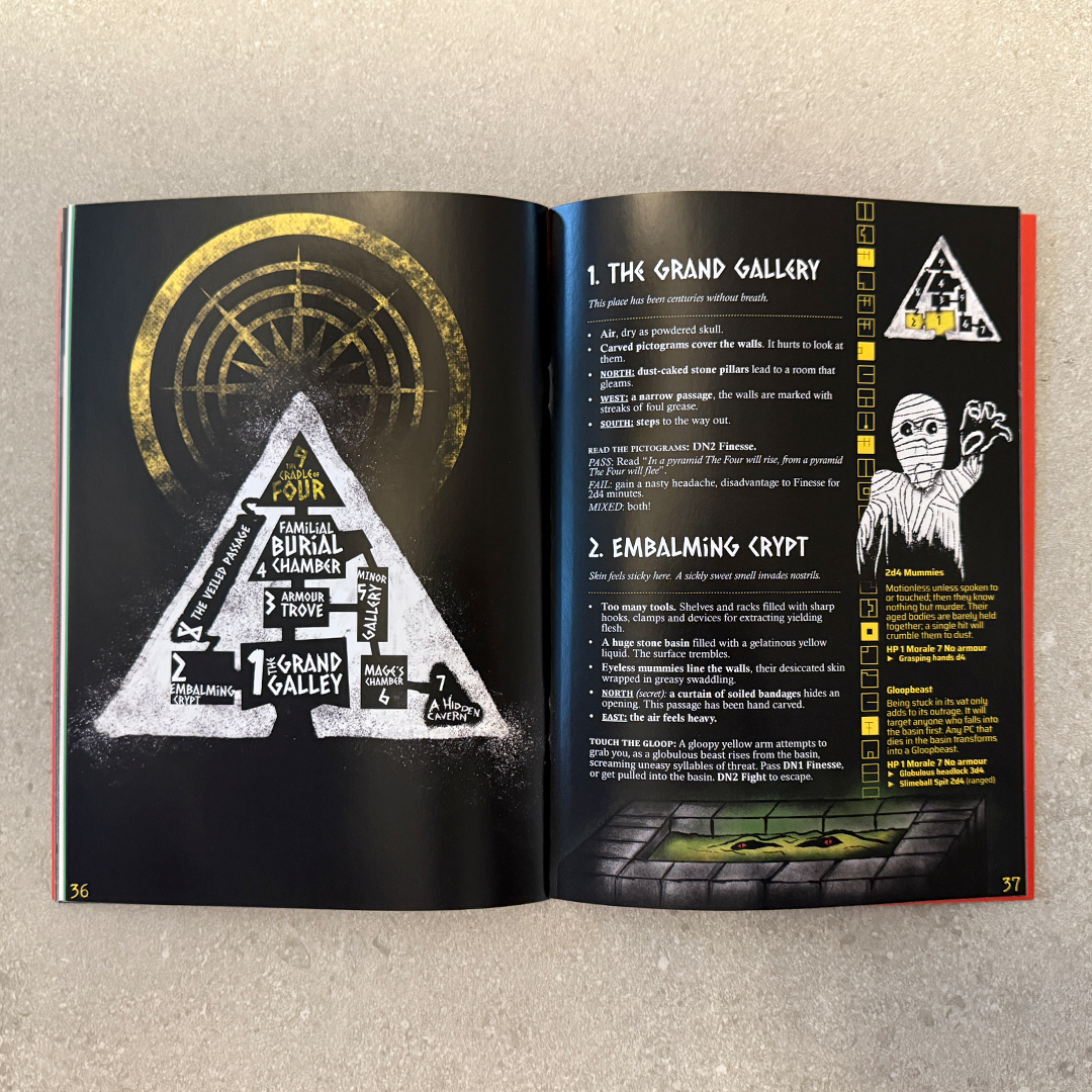 FOUR BORG is a desperately needed simplification of the indulgently complex system at the heart of the rules-heavy MÖRK BORG.