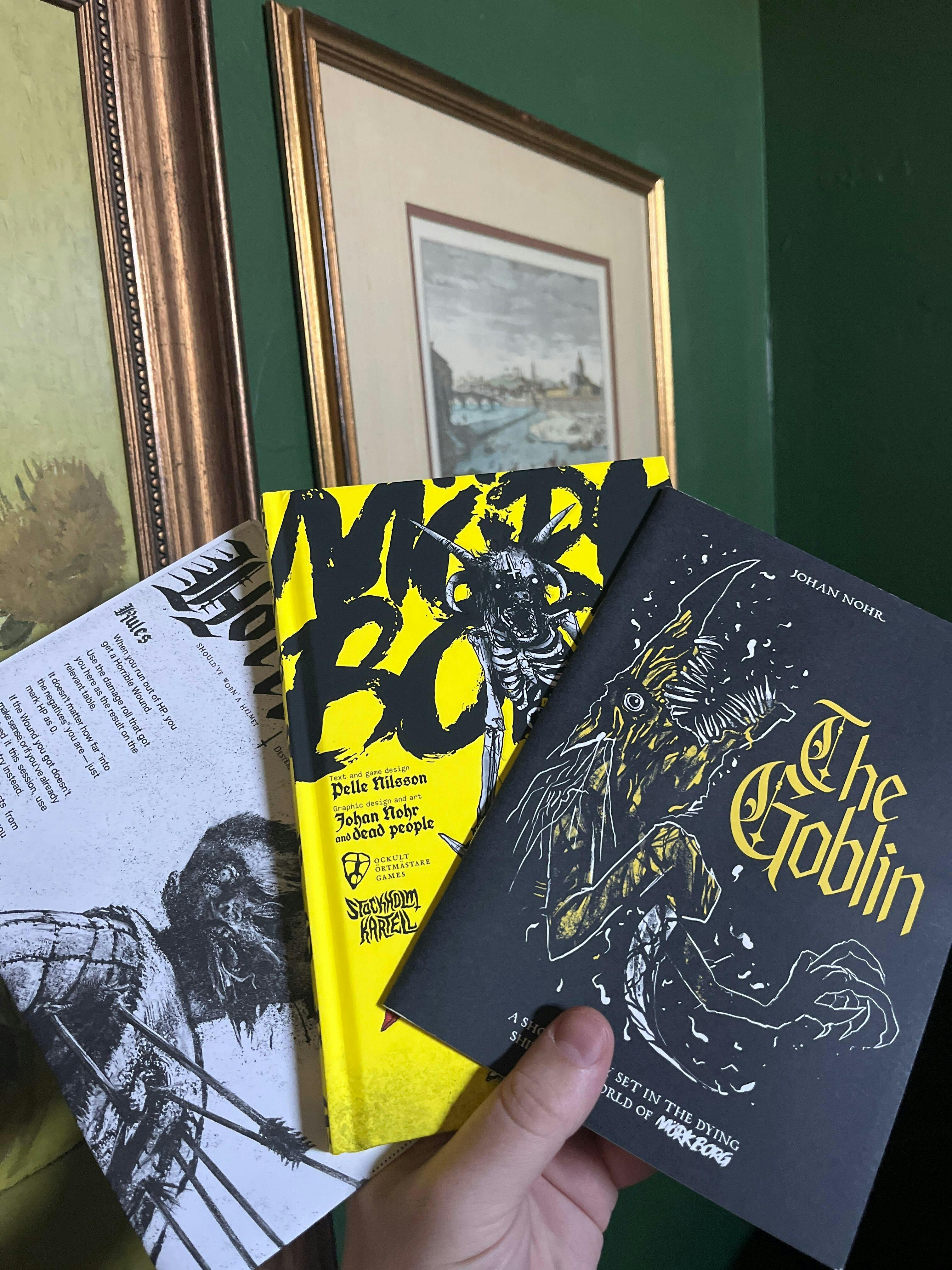 MÖRK BORG is a pitch-black apocalyptic fantasy RPG about lost souls and fools seeking redemption, forgiveness or the last remaining riches in a bleak and dying world. Who are you? The tomb robber with silver glittering between cracked fingernails? The mystic who would bend the world’s heart away from it’s inevitable end? Confront power-draining necromancers, skulking skeletal warriors and backstabbing wickheads. Wander the Valley of the Unfortunate Undead, the catacombs beneath the Bergen Chrypt or the bedeviled Sarkash forest. But leave hope behind – the world’s cruel fate is sealed, and all your vain heroic efforts are destined to end in death and dismay. Or are they?
