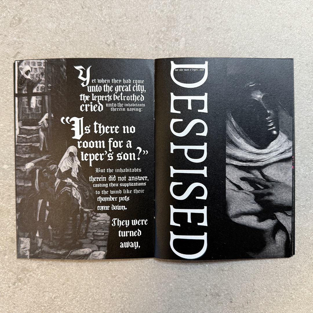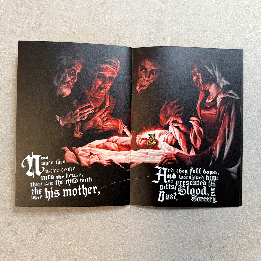 The first illustrated story book for MÖRK BORG! Beautiful and offensively blasphemous art puts a twist on the familiar nativity story. Makes a perfect read for children before bed on Christmas Eve or as a symbol of profanity under the tree! For unto you is born this day, a Tyrant.
