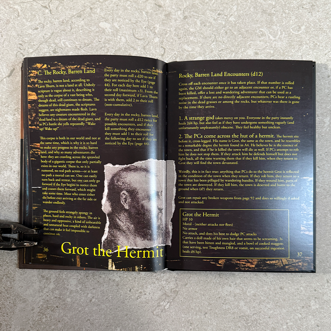 Become characters in Brian Evenson's first-ever role-playing game module. Taking content and inspiration from decades of fiction, Brian has created a horrifying world for you to explore. Using MÖRK BORG's system, you will create characters that will trudge through this broiling and unforgiving landscape.