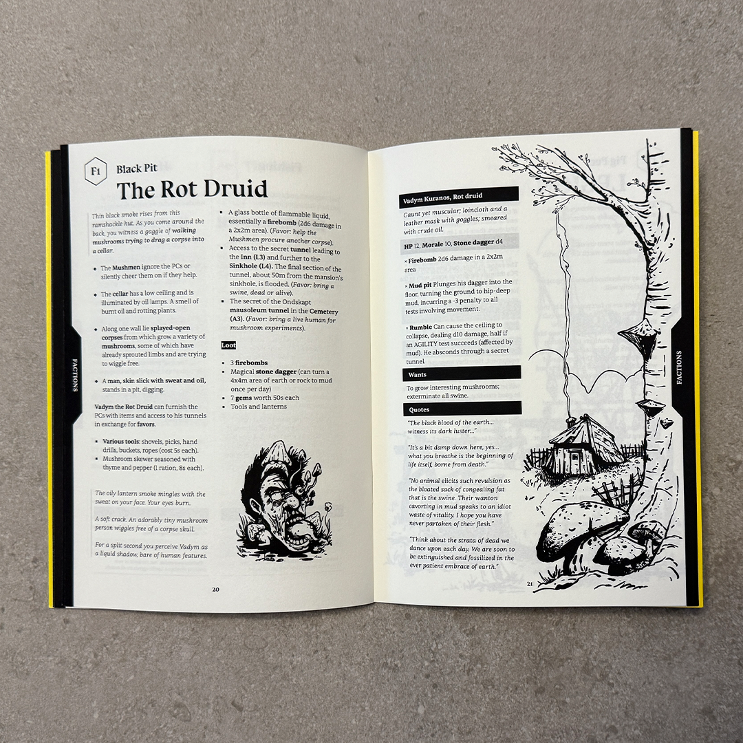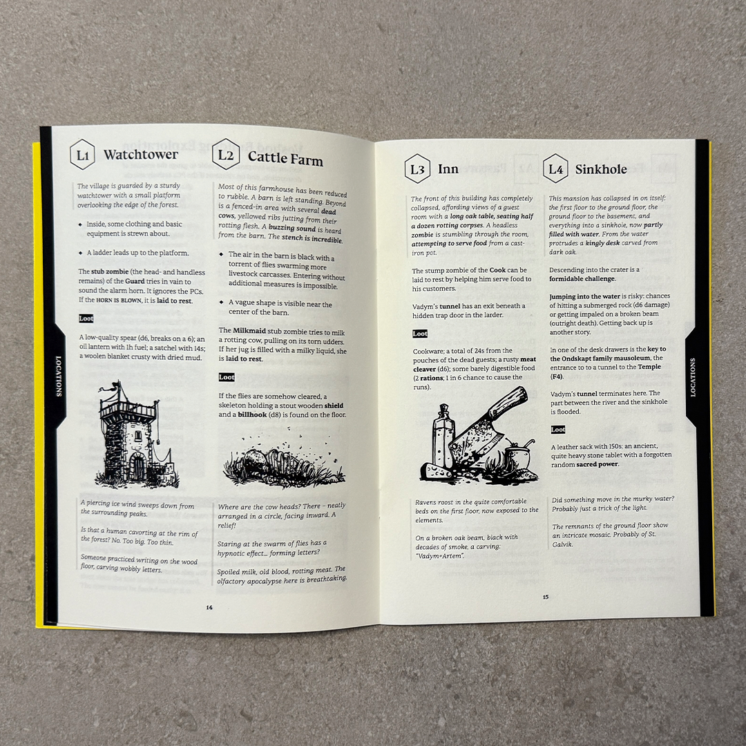 Watchers of Voshod is a dark fantasy / horror adventure for OSR roleplaying games. The stats and mechanics are given for Mörk Borg, but can easily be adapted to other systems.