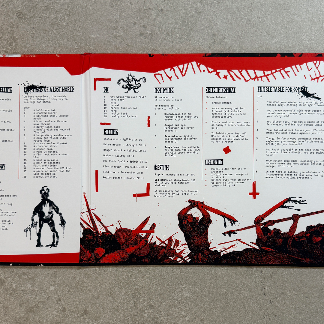 Yggdrasil Burns is an independent production by Nordic Skalds and is not affiliated with Ockult Örtmästare Games or Stockholm Kartell. It is published under the MÖRK BORG Third Party License.
